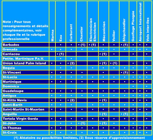 île : marinas, eau et carburant, professionnels nautiques, aéroports Pour des informations plus complexes, se reporter aux rubriques professionnelles (pages bleues) de chaque île. |